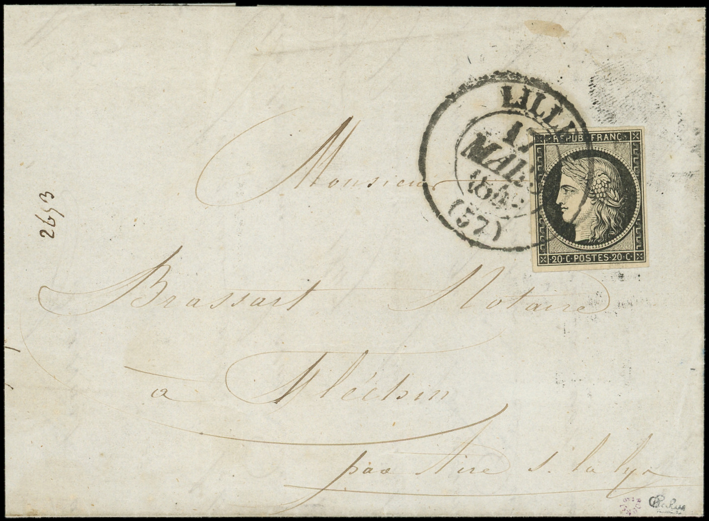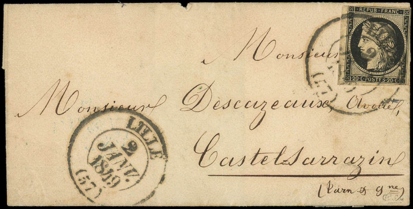 3 20c. noir sur jaune, obl. càd T13 LILLE 2 JANV 1849 répété à côté s. LSC, Superbe. C