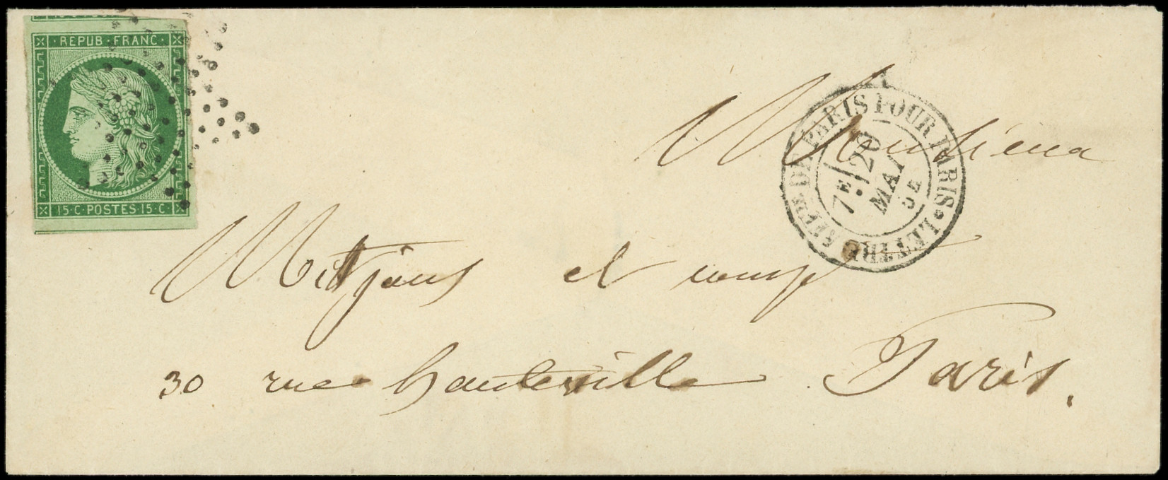 2 15c. vert, obl. ETOILE s. Env. locale, càd LETTRE AFFie DE PARIS POUR PARIS 20/5/52, combinaison RR et Superbe