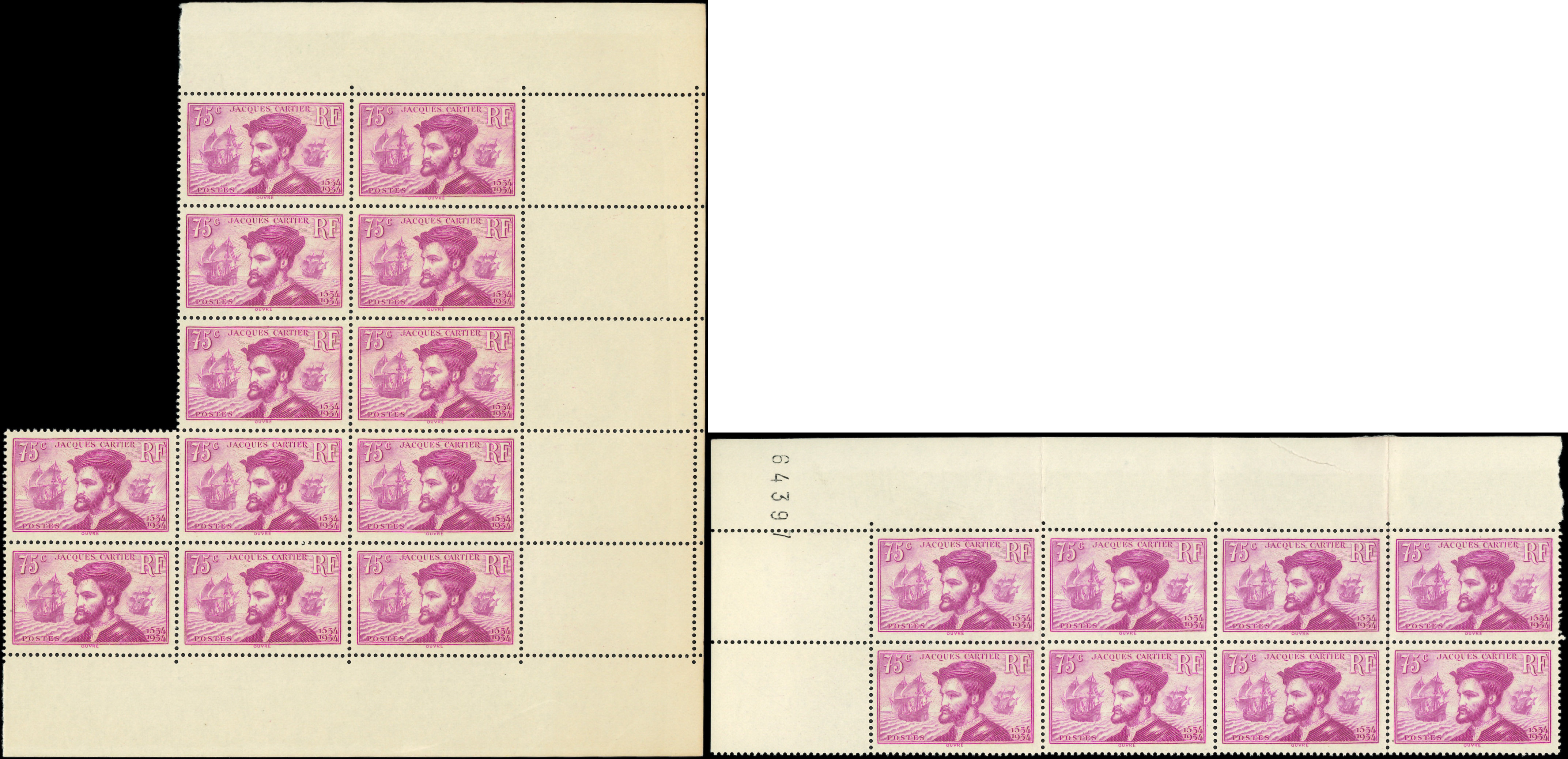 296/97 J. Cartier, 30 ex. en divers blocs, TB