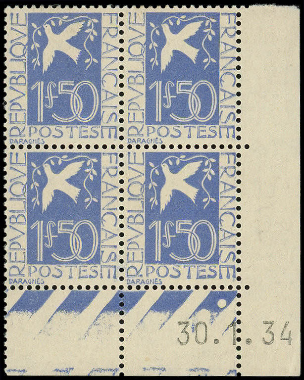 294 Colombe de la Paix, 1f.50 outremer, BLOC de 4 CD 30/1/34, TB