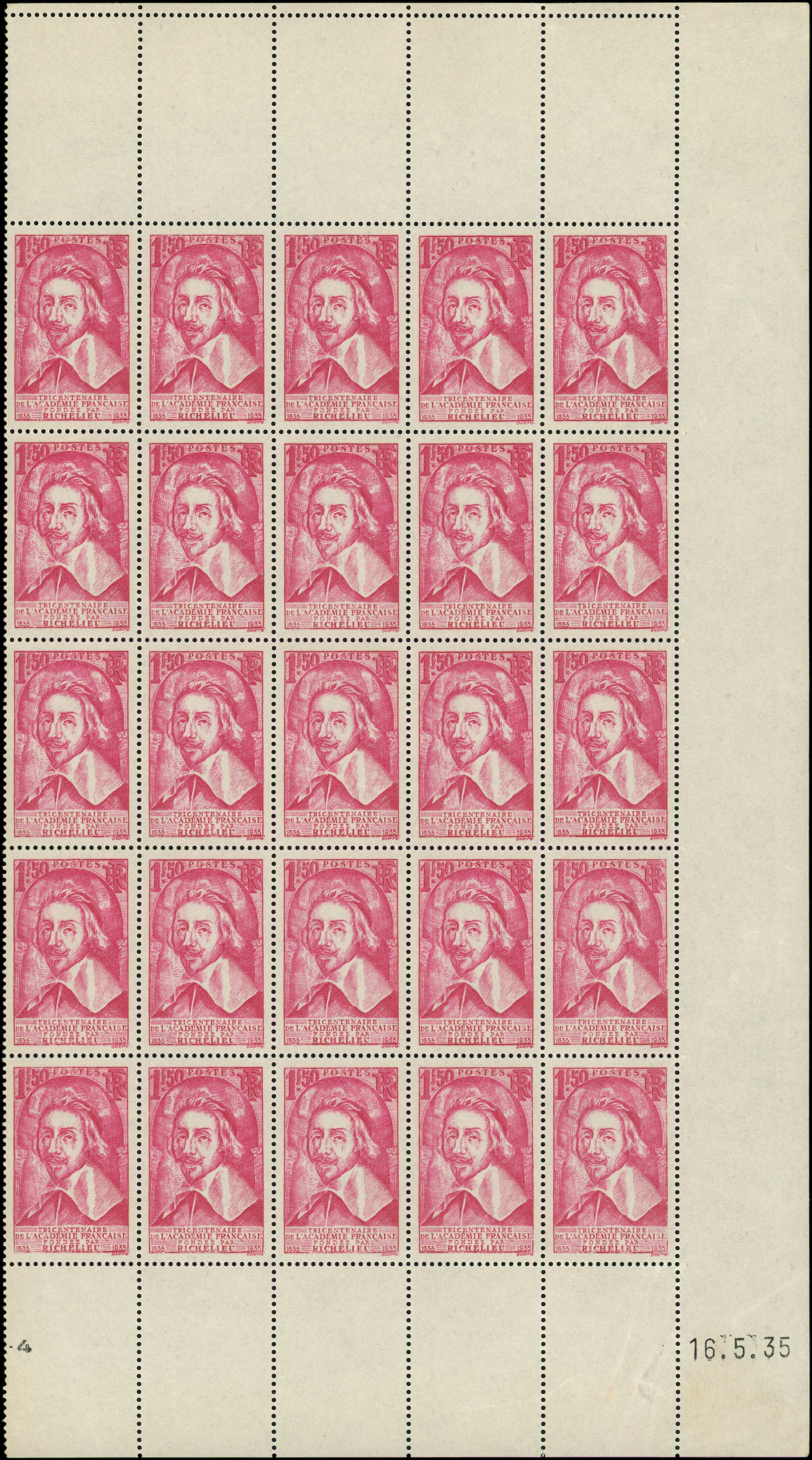 305 Richelieu, 1f.50 rose, PANNEAU de 25, CD 16/5/35, TB
