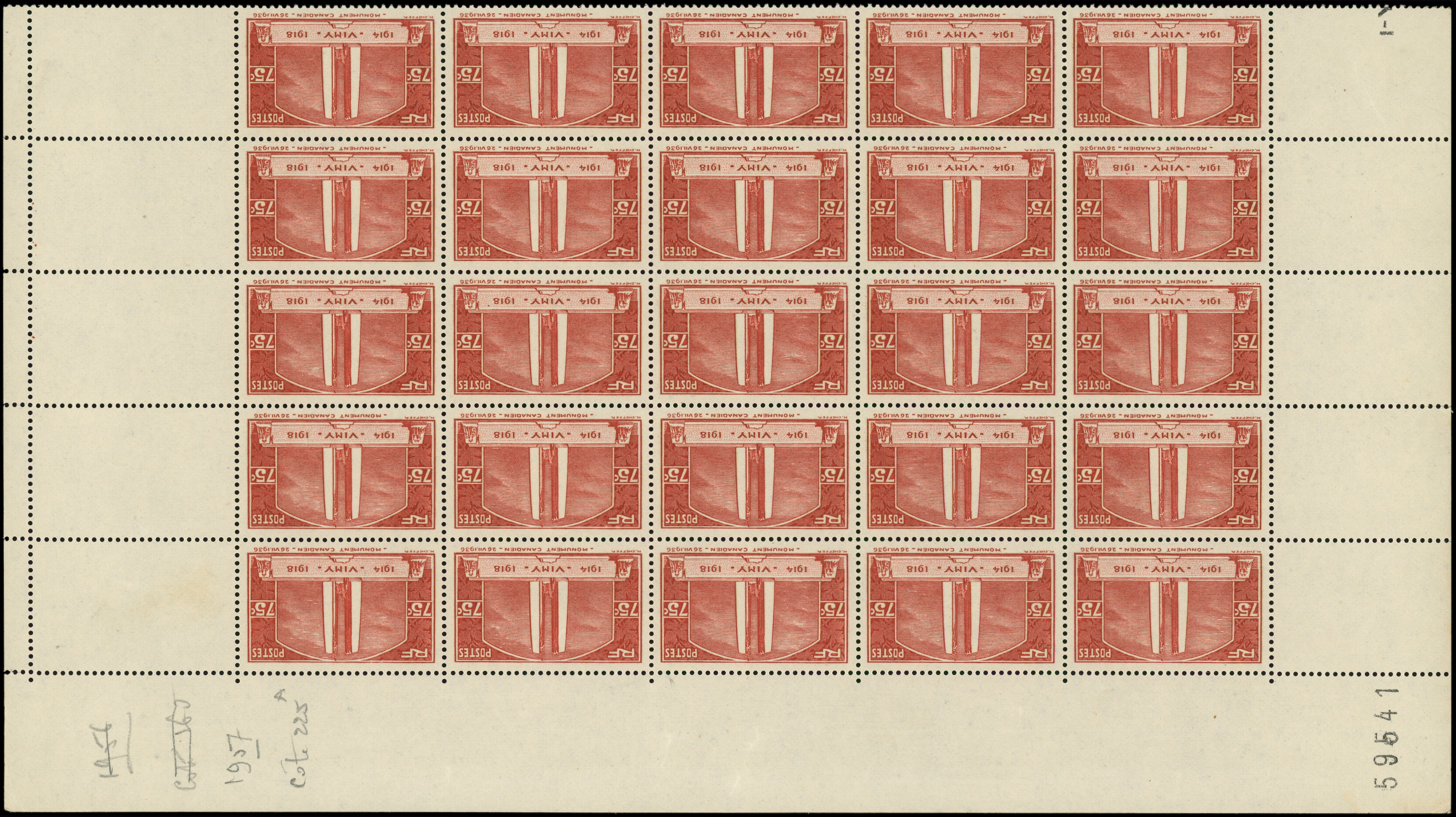 316/17 Vimy, 2 PANNEAUX de 25 haut de feuille, TB