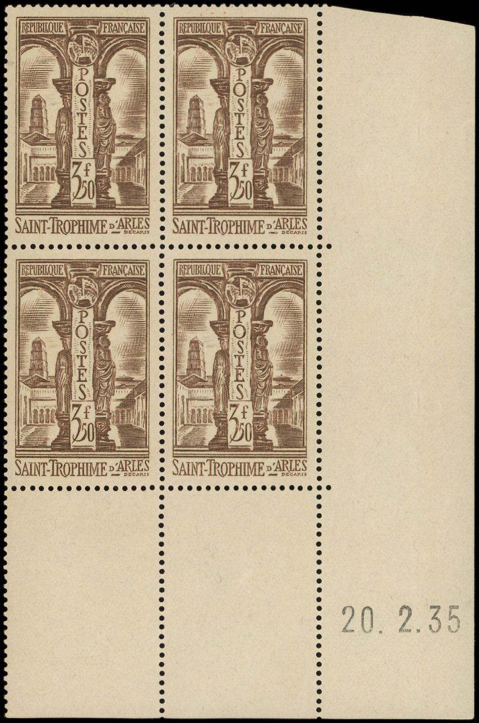 302 St Trophime, 3f.50 brun, BLOC de 4 CD 20/2/35, TB