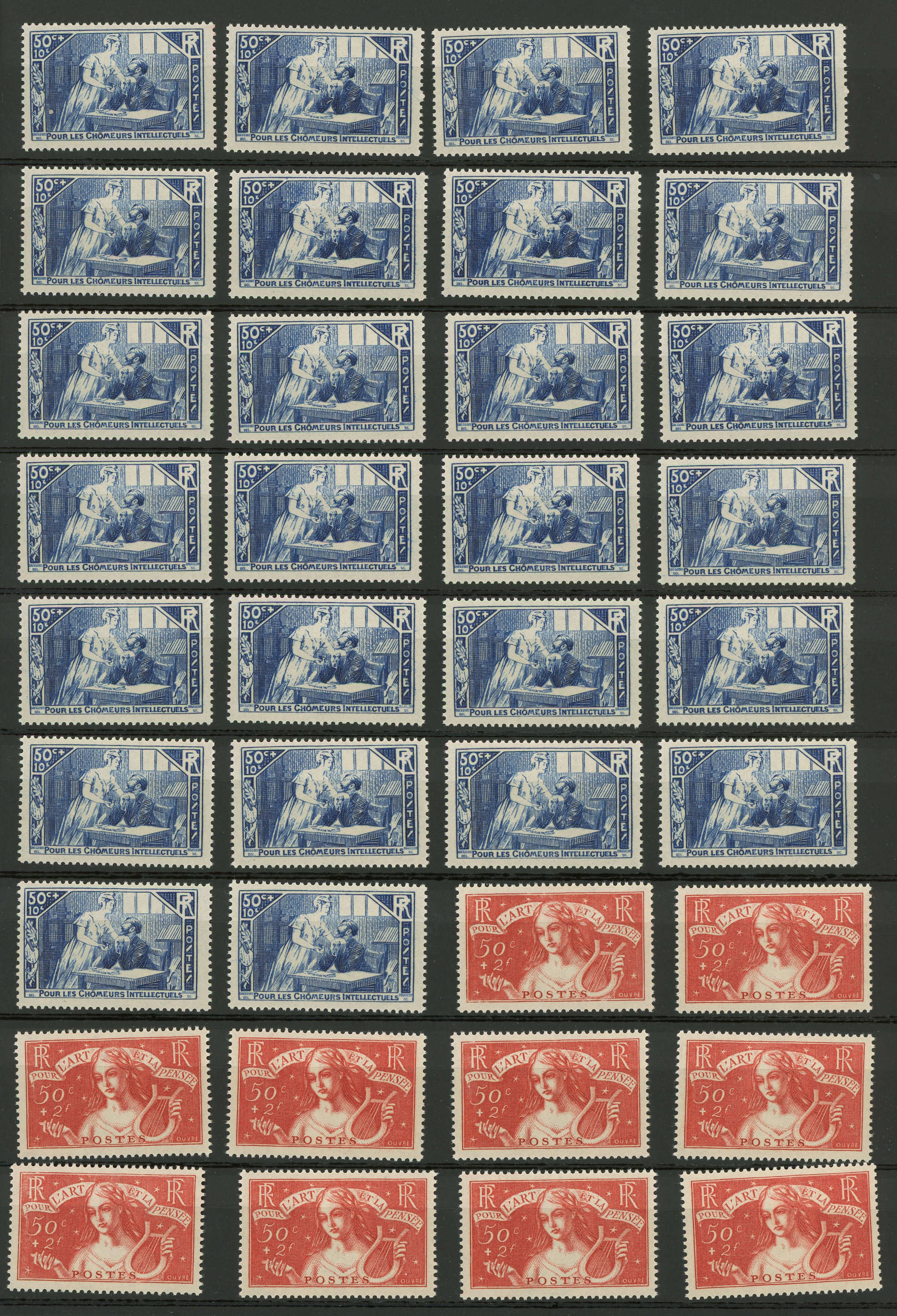 307/308, Chômeurs, 46 paires, en détachés ou blocs de 4, TB