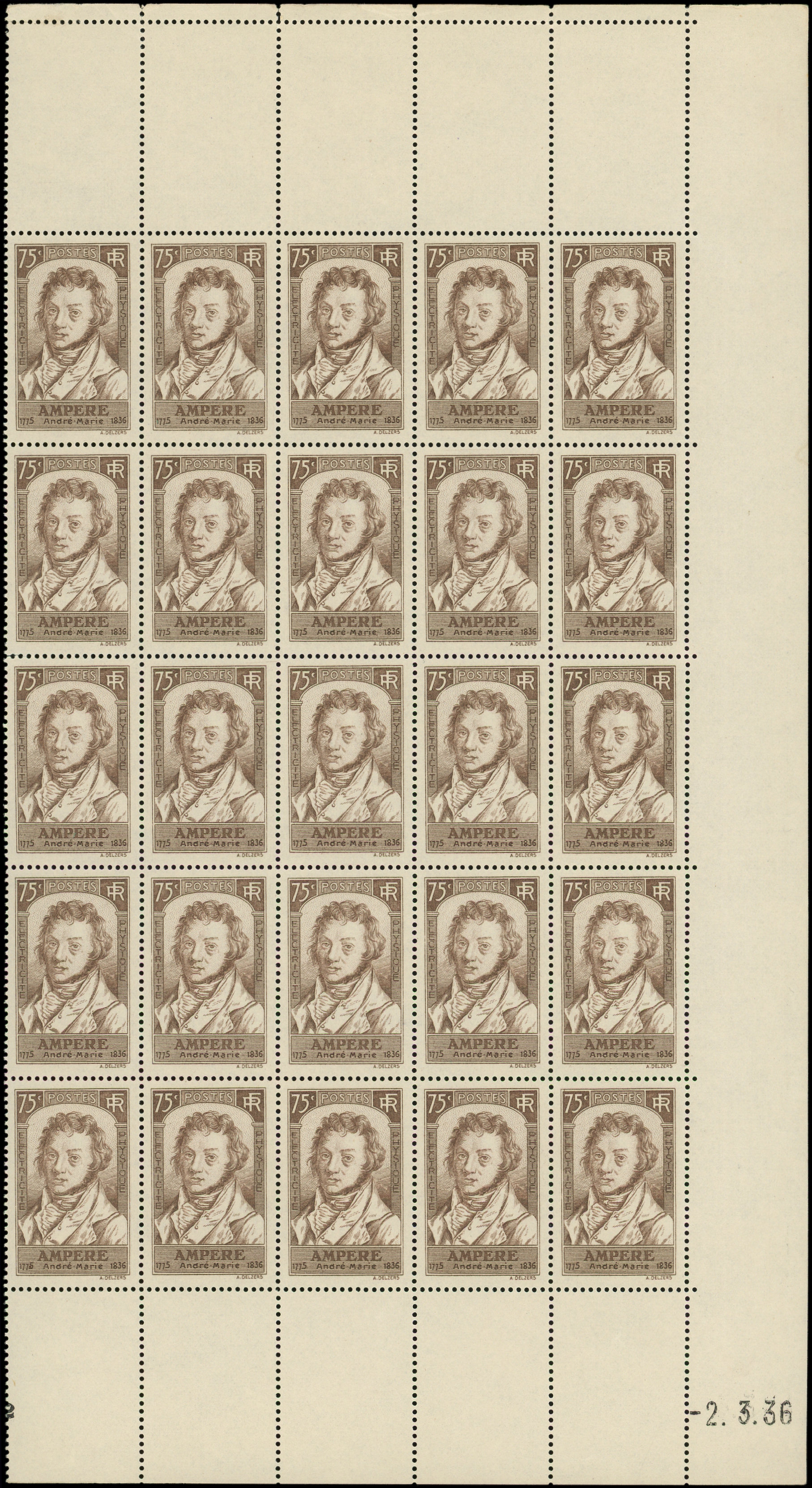 310 Ampère, 75c. brun, PANNEAU de 25, CD 2/3/36, TB