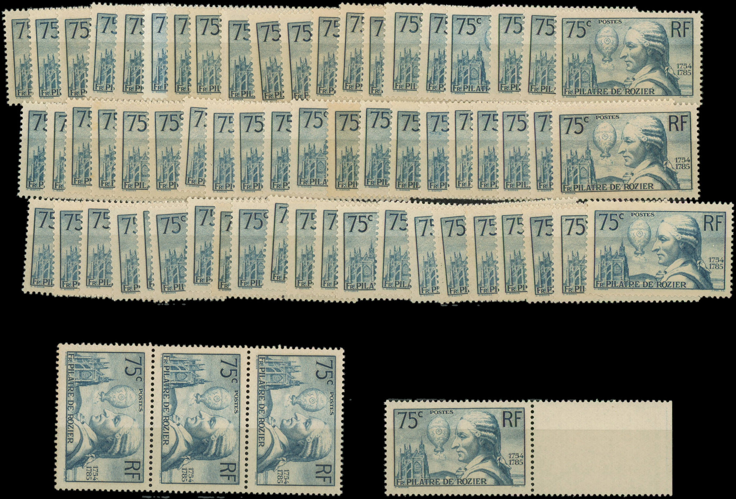 313 Pilâtre de Rozier, 75c. bleu-vert, 101 ex. dont 8 BLOCS de 4 CD non comptés comme tels, TB