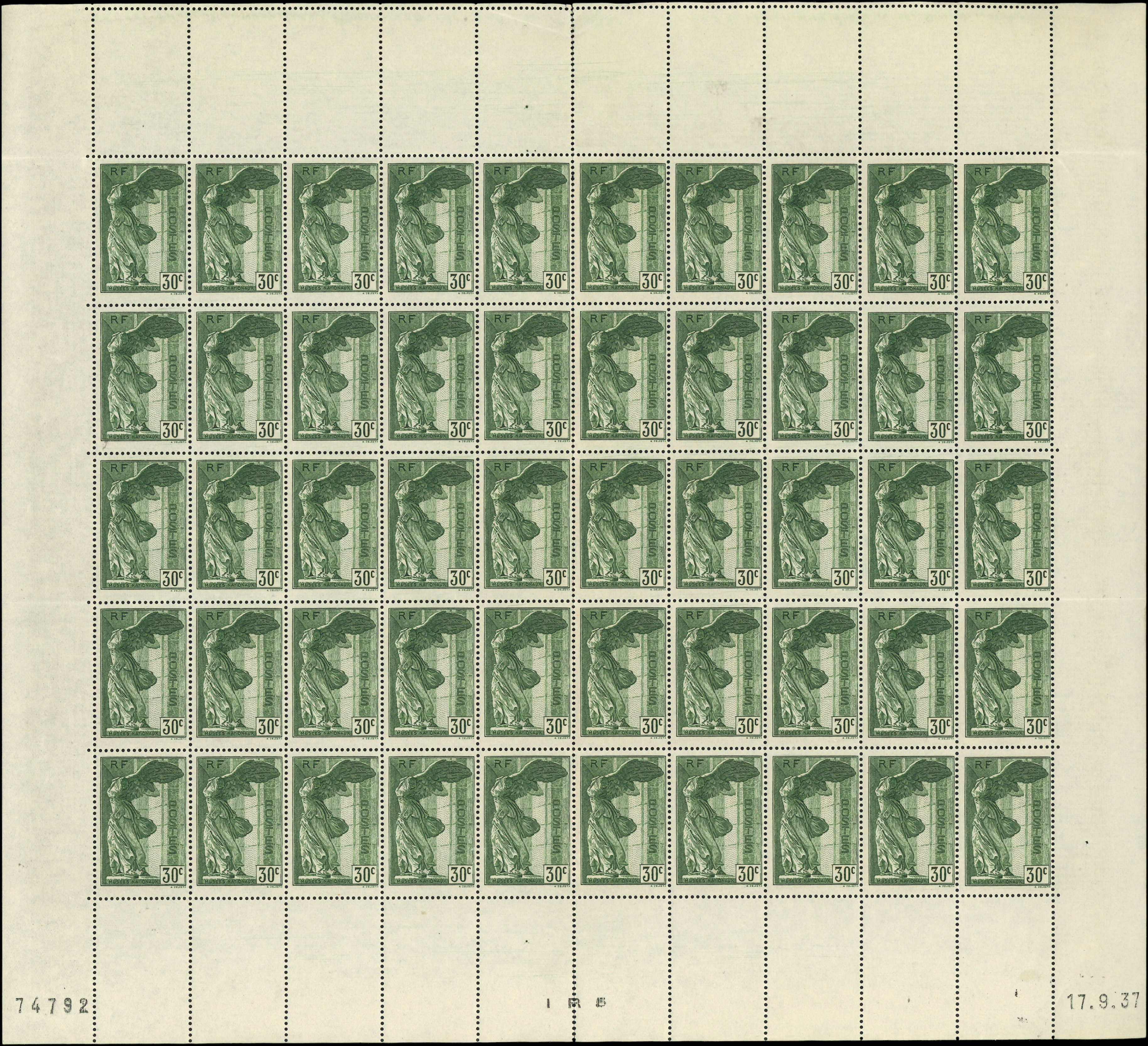 371 Paix, 1f.40 lilas, FEUILLE de 100 CD 26/1/39, TB