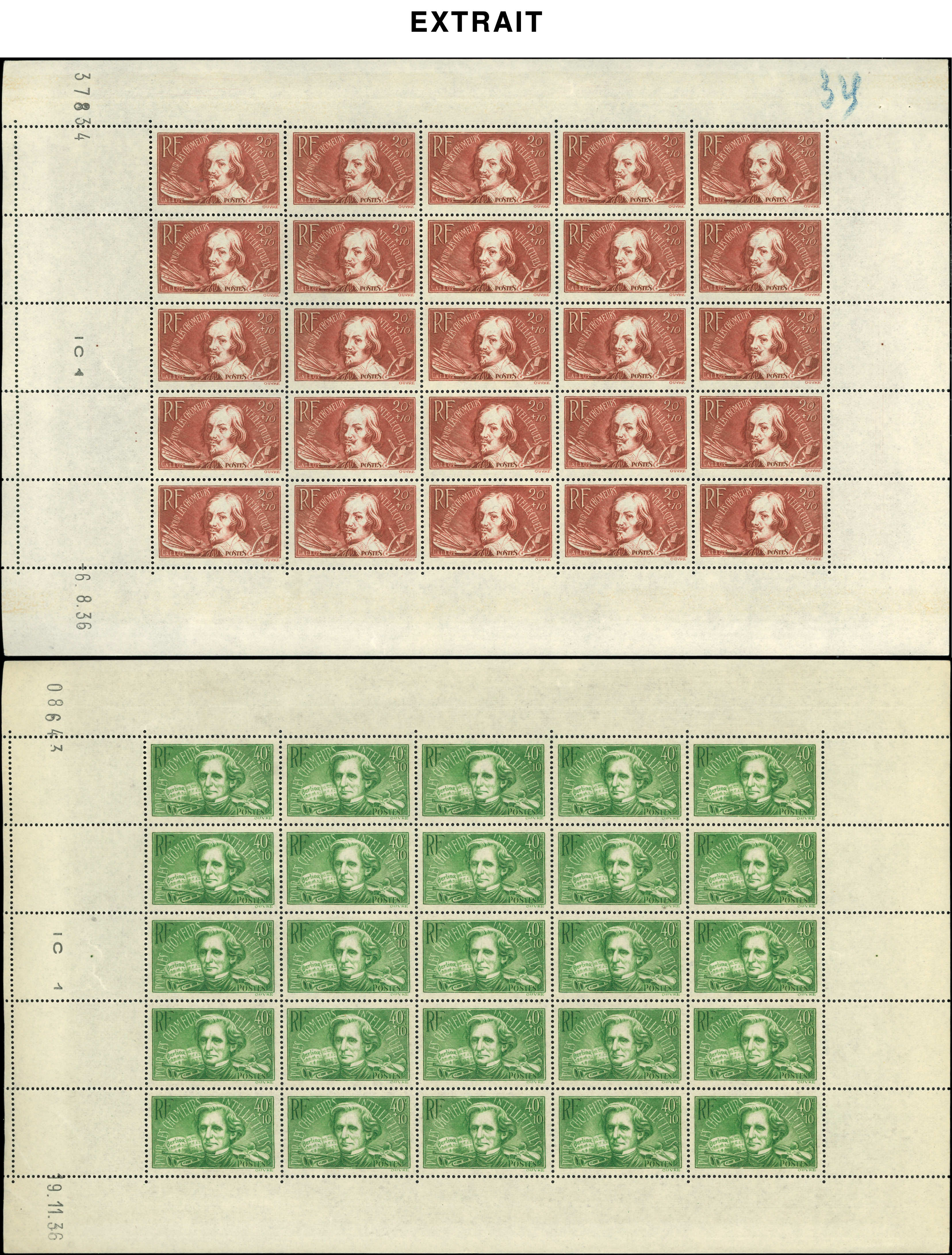343/44 Chômeurs Intellectuels, 30c. + 10c. (312) et 90c. + 10c. (269), en feuilles ou blocs, TB