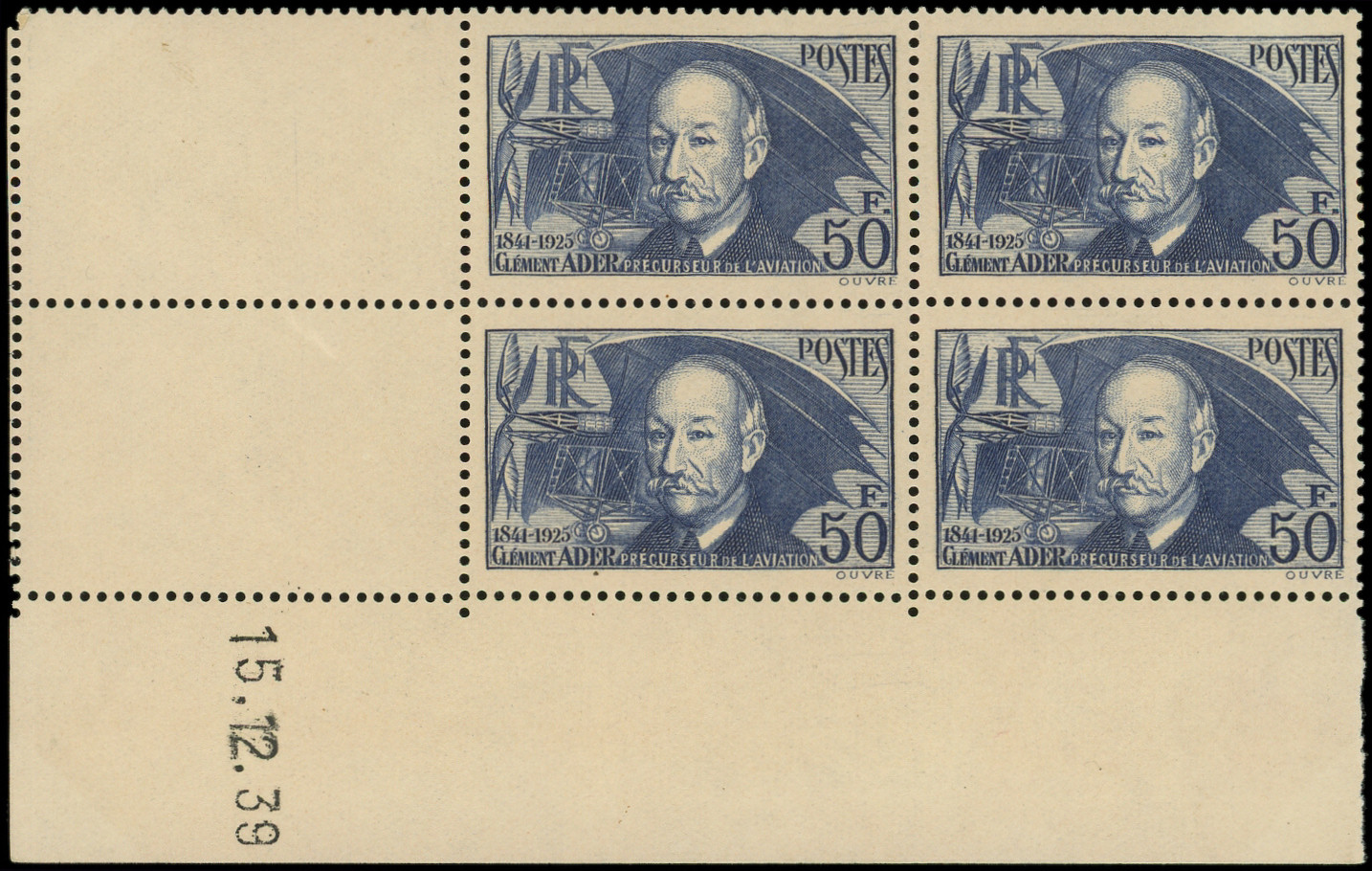 398 Clément Ader, 50f. outremer, BLOC de 4 CD 15/12/39, TB