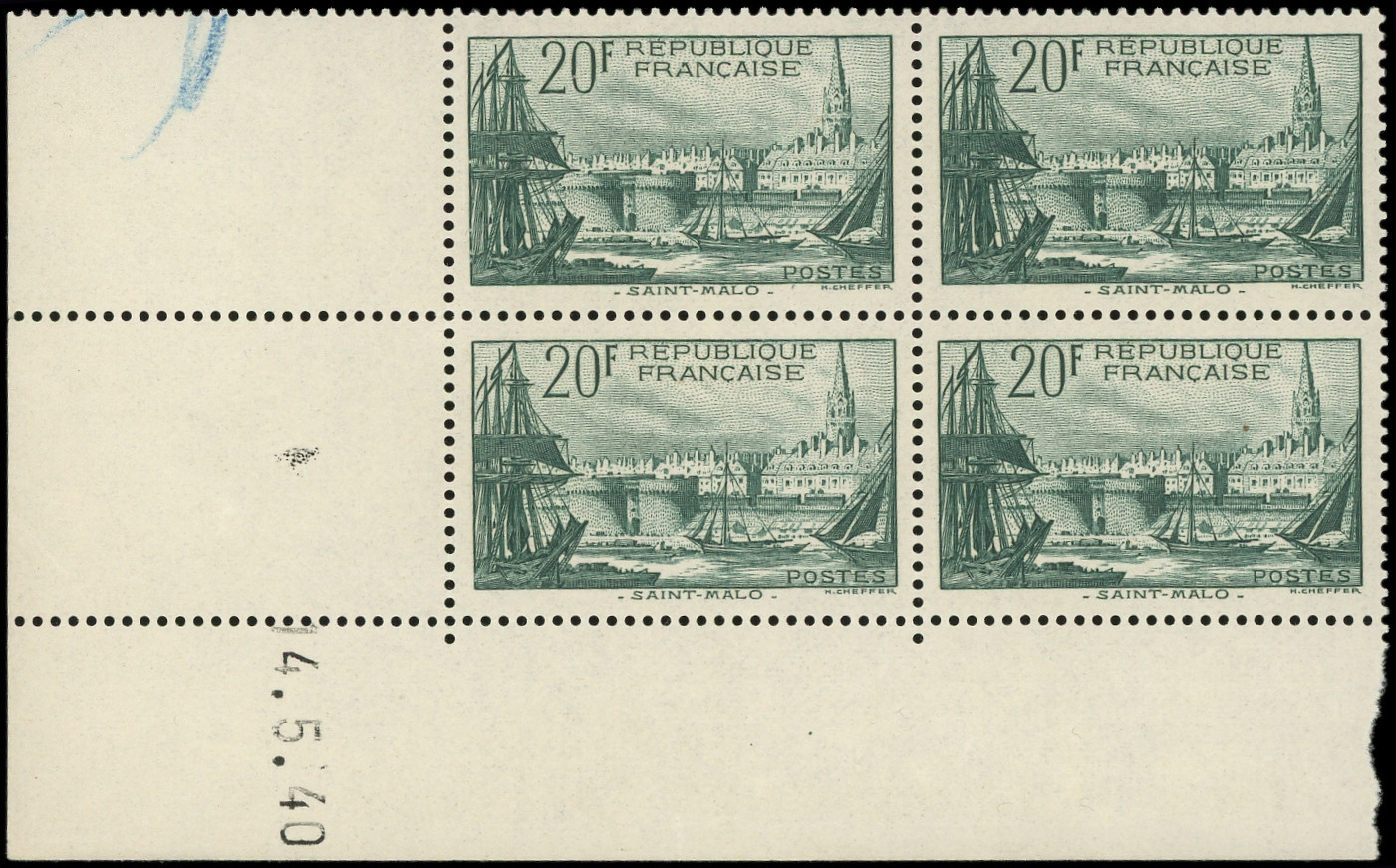 394 St Malo, 20f. vert, BLOC de 4 CD 4/5/40, TB