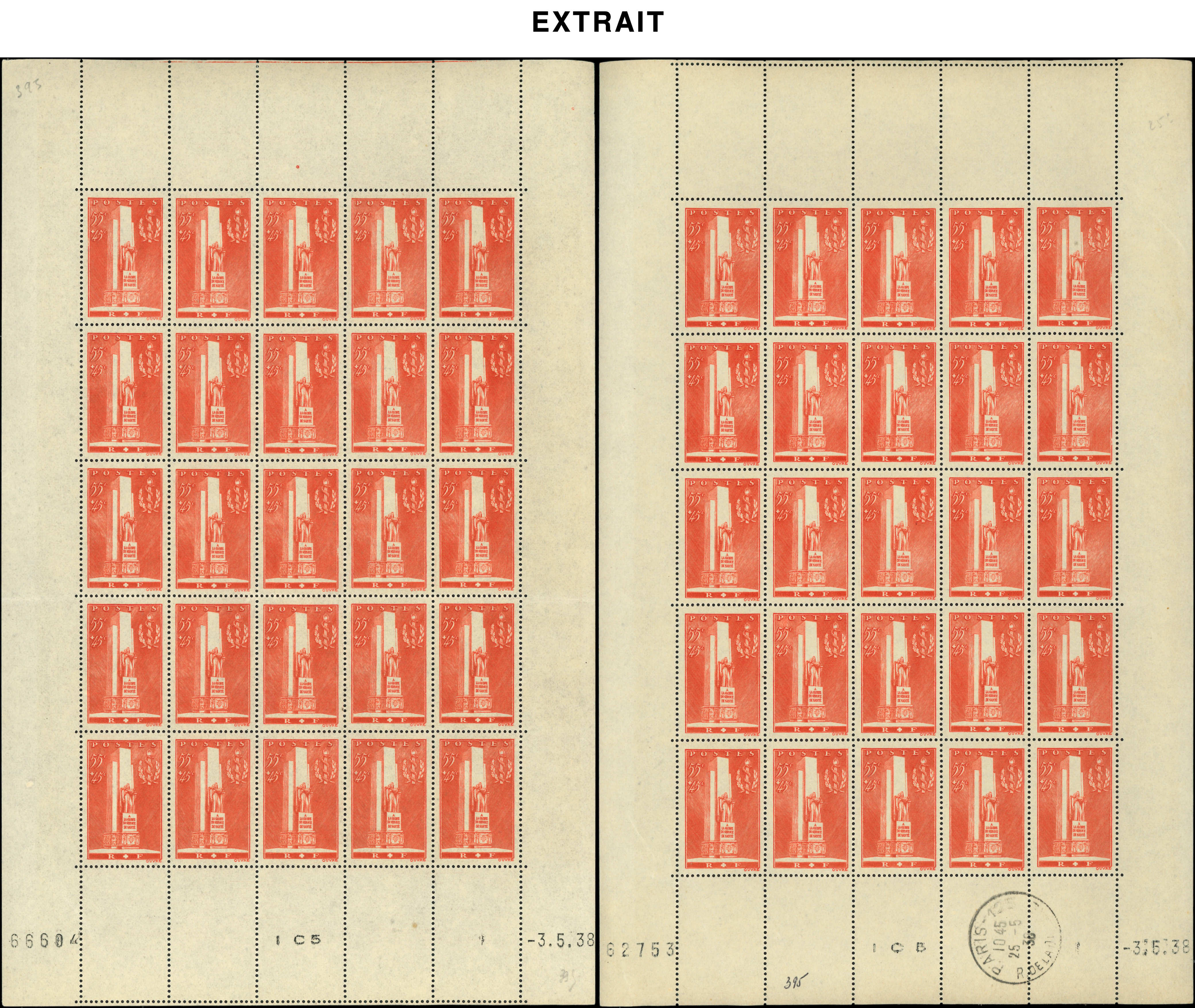 379 Versailles, 1f.75 + 75c. bleu, FEUILLE de 25 CD 12/4/38, TB