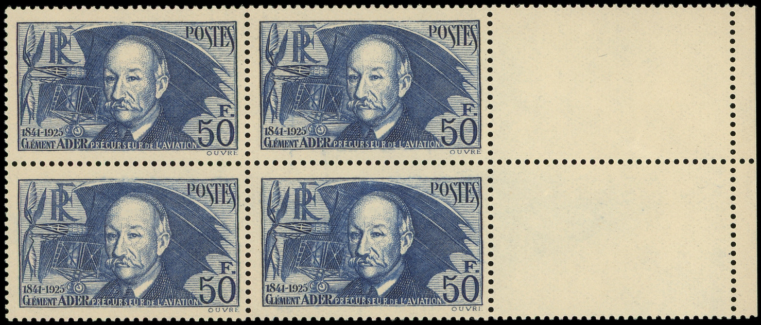398 Clément Ader, 50f. outremer, BLOC de 4, bdf, TB