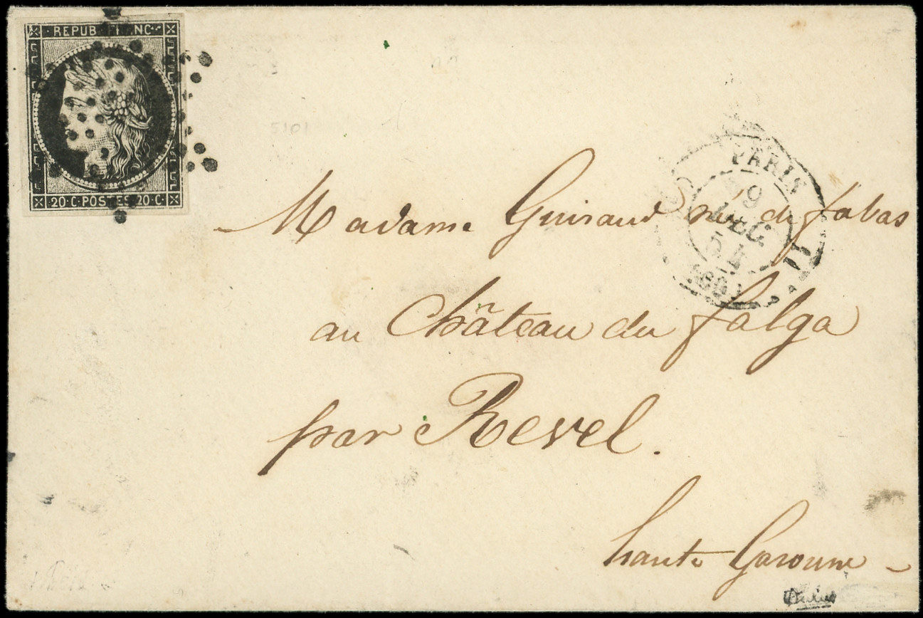 3a 20c. noir sur blanc, obl. ETOILE s. Env., càd PARIS 9/12/54, arr. REVEL 12/12, grande RARETE, TTB. C