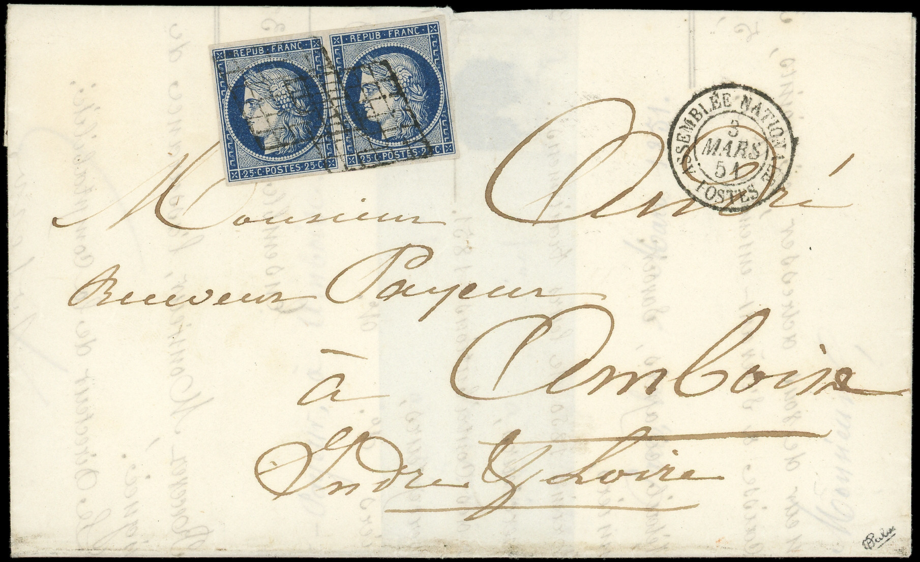 4a 25c. bleu foncé, PAIRE obl. GRILLE s. LAC, càd ASSEMBLEE NATIONALE POSTES 3/5/51, TB