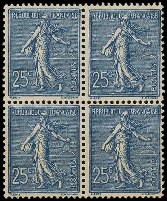 132a Semeuse Lignée, 25c. bleu foncé, BLOC de 4, très frais, TTB