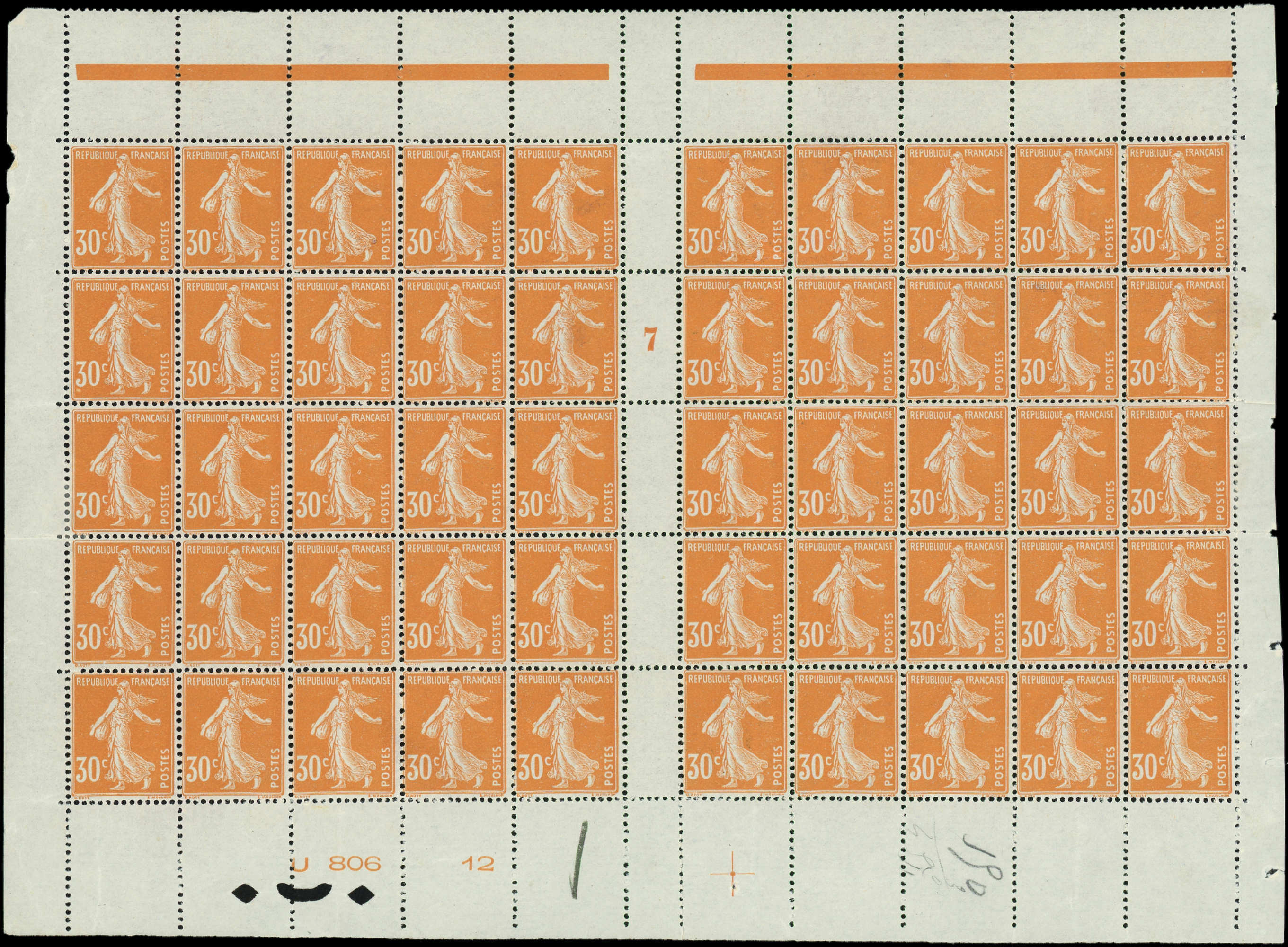 141 Semeuse Camée, 30c. orange, PANNEAU de 50 Mill.7, bon centrage, TB