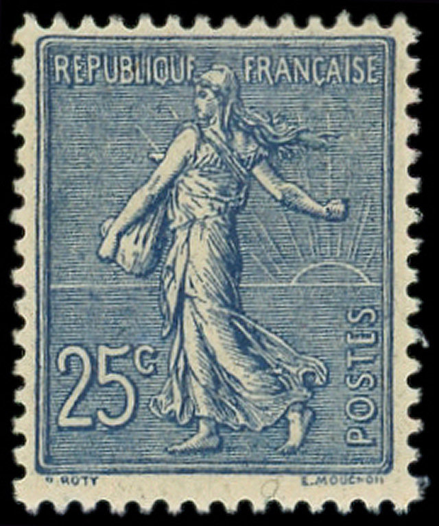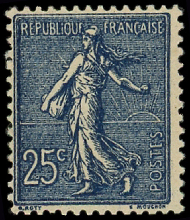 132a Semeuse Lignée, 25c. bleu foncé, bien centré, TB