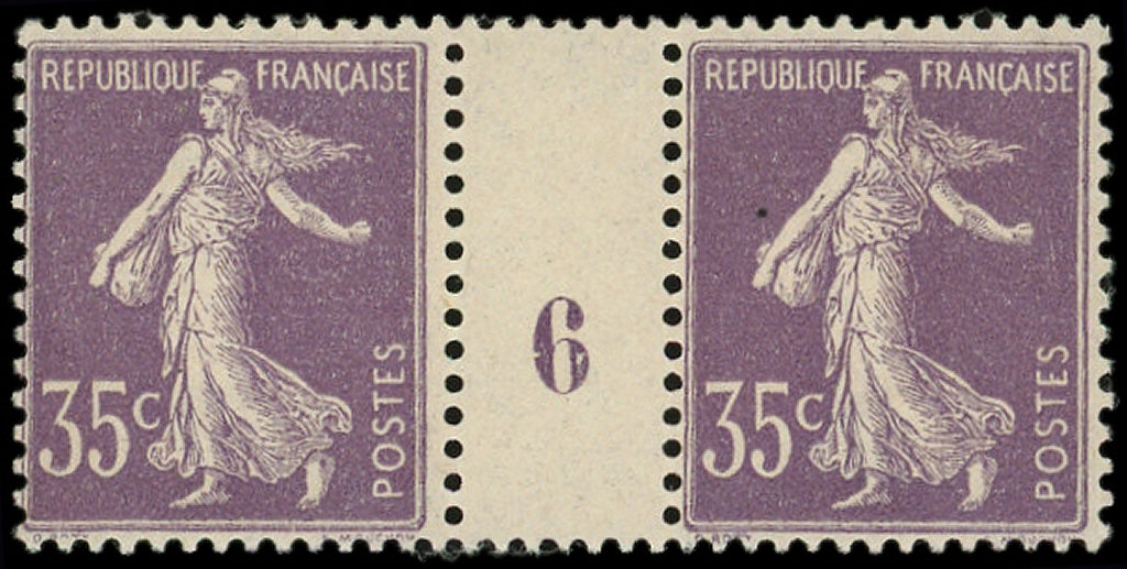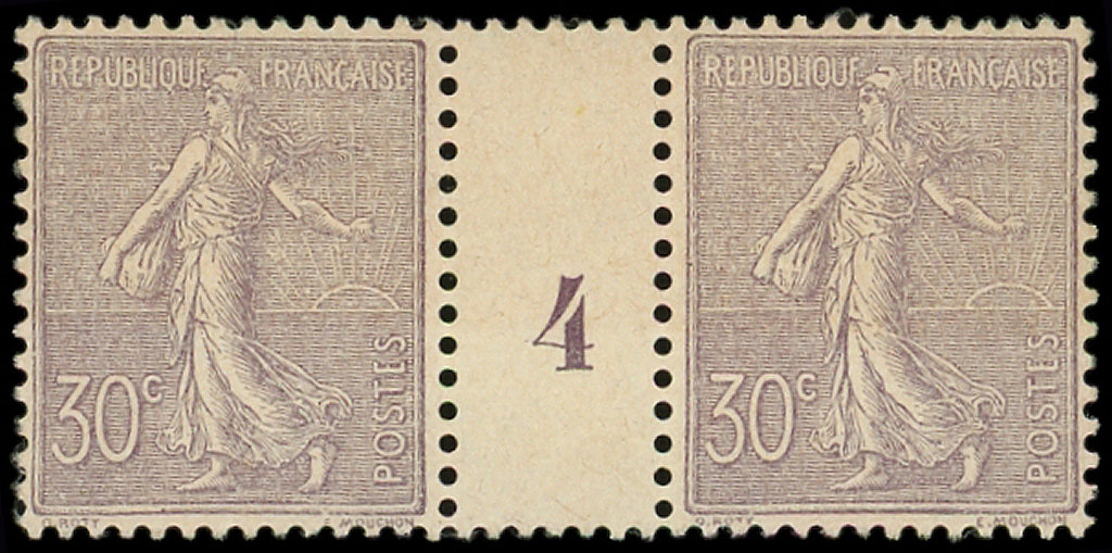 133 Semeuse Lignée, 30c. lilas, PAIRE Mill.4, ch. sur intervalle, timbres très bien centrés et TB