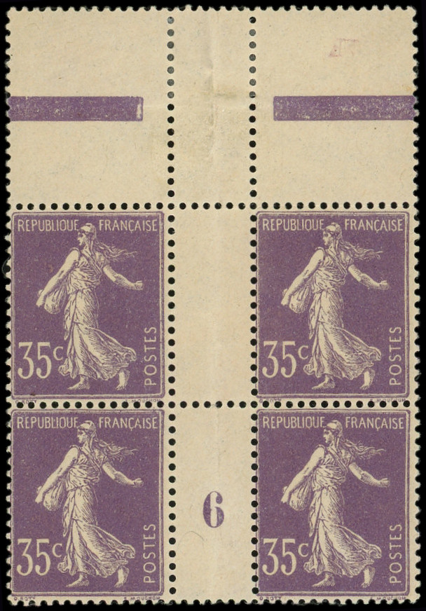 136 Semeuse Chiffres Maigres, 35c. violet clair, T IIA, BLOC de 4 Mill.6 bdf, 1 ex. *, TB