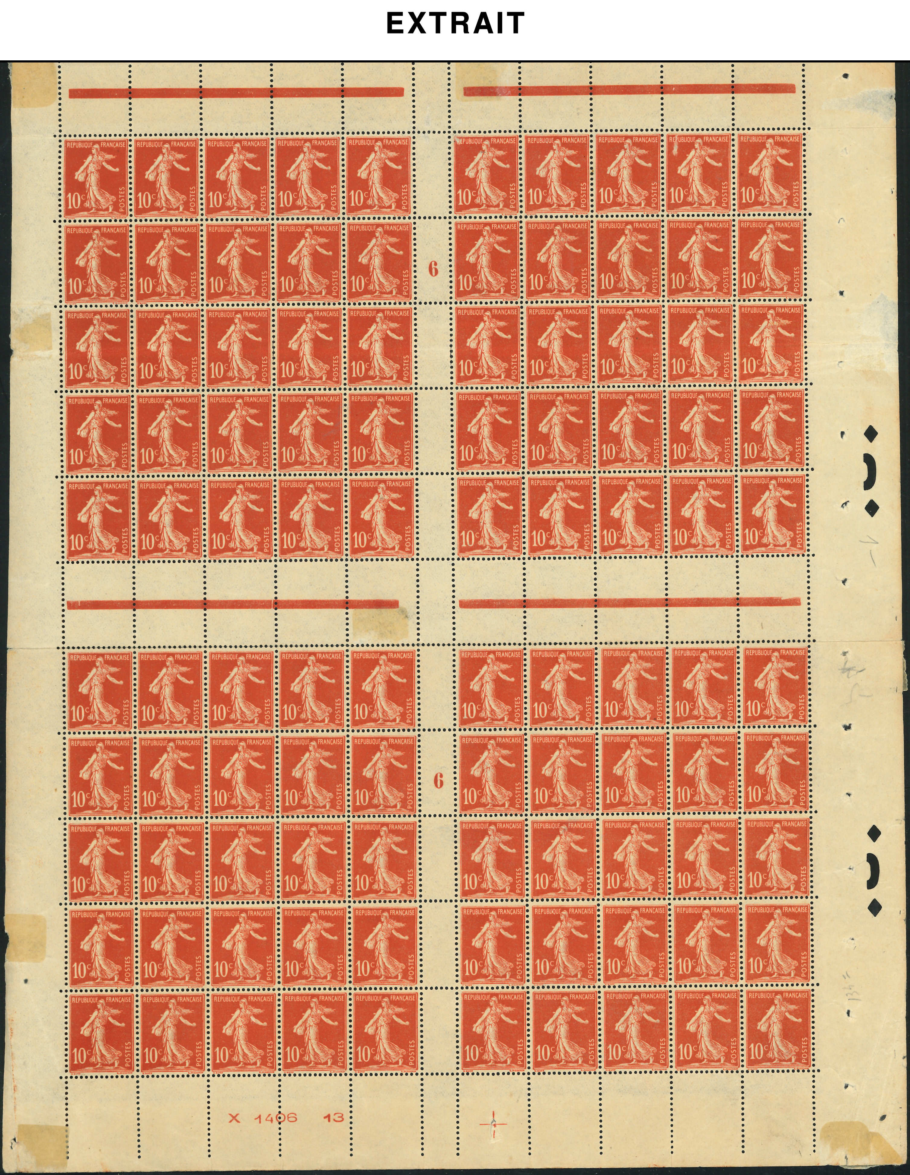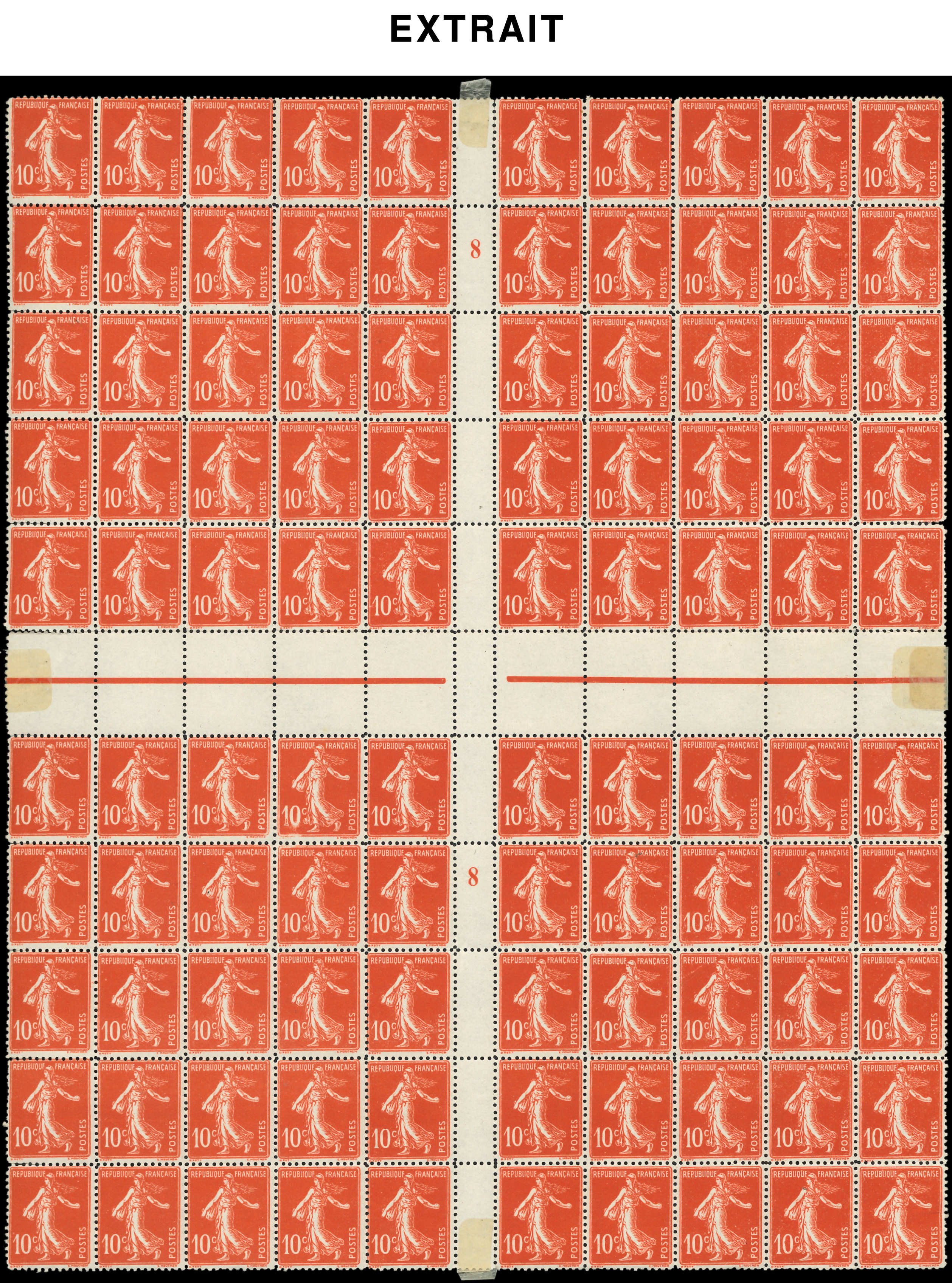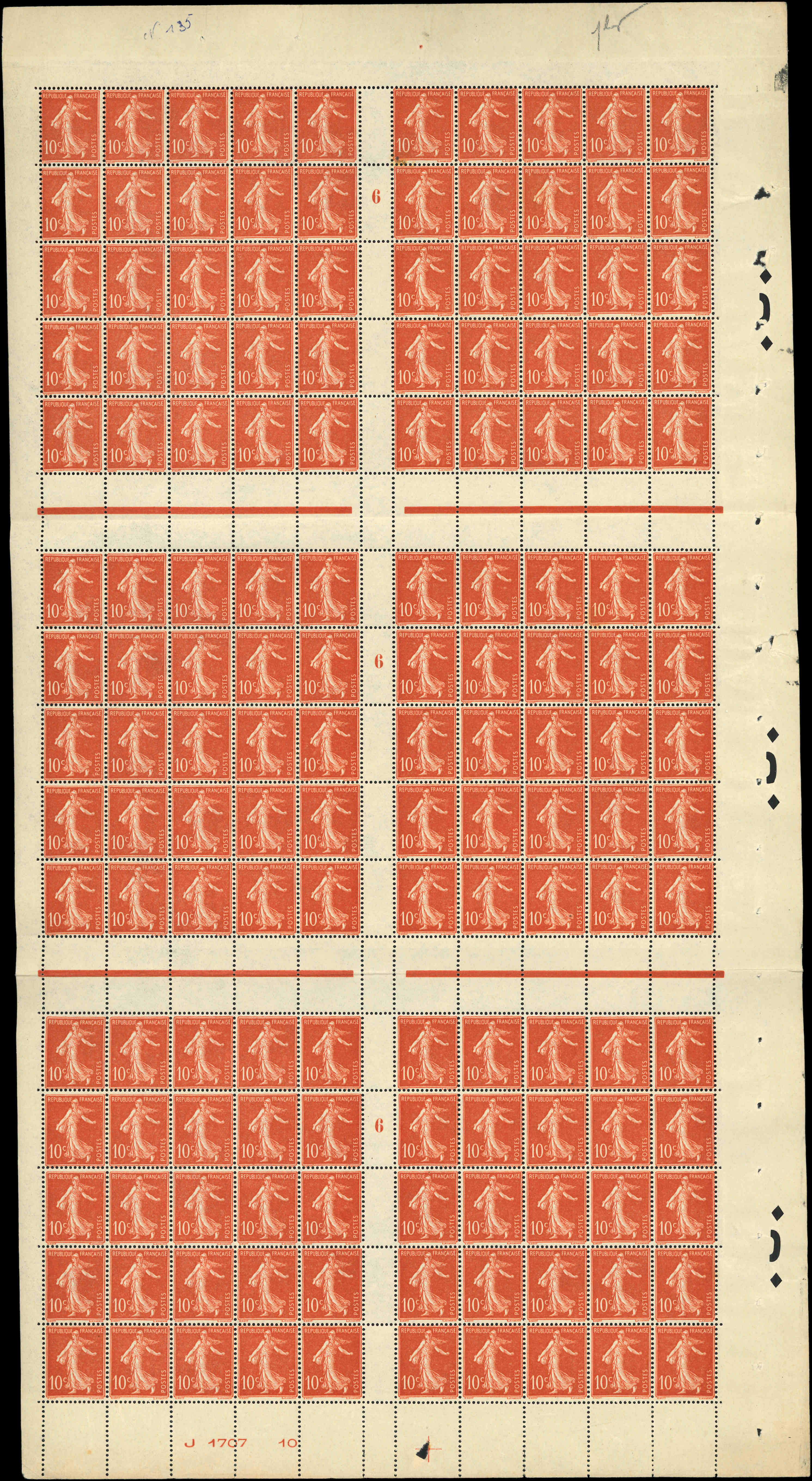 135 Semeuse Chiffres Maigres, 10c. rouge, T I, FEUILLE de 150, TB