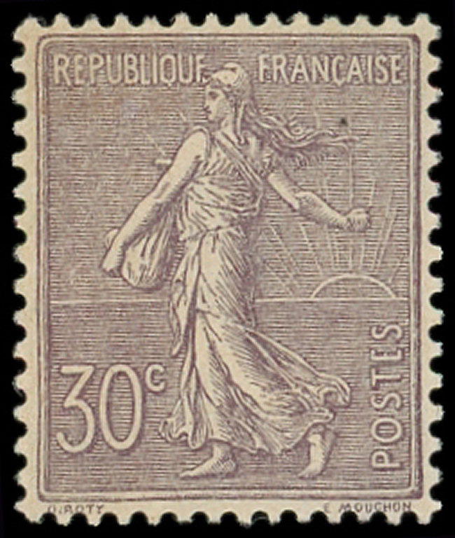 133 Semeuse Lignée, 30c. lilas, cdf, TTB