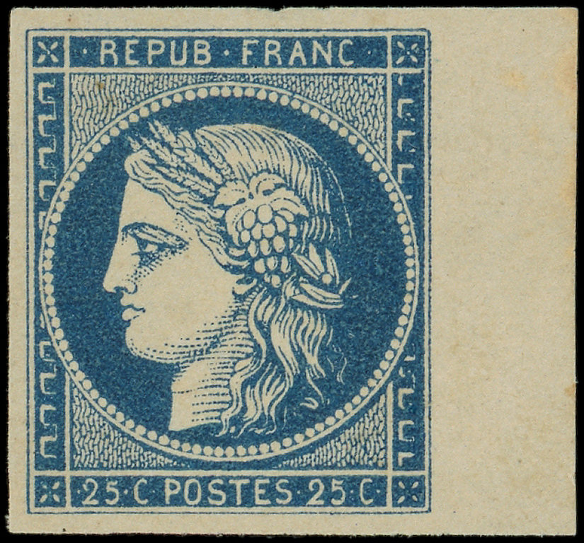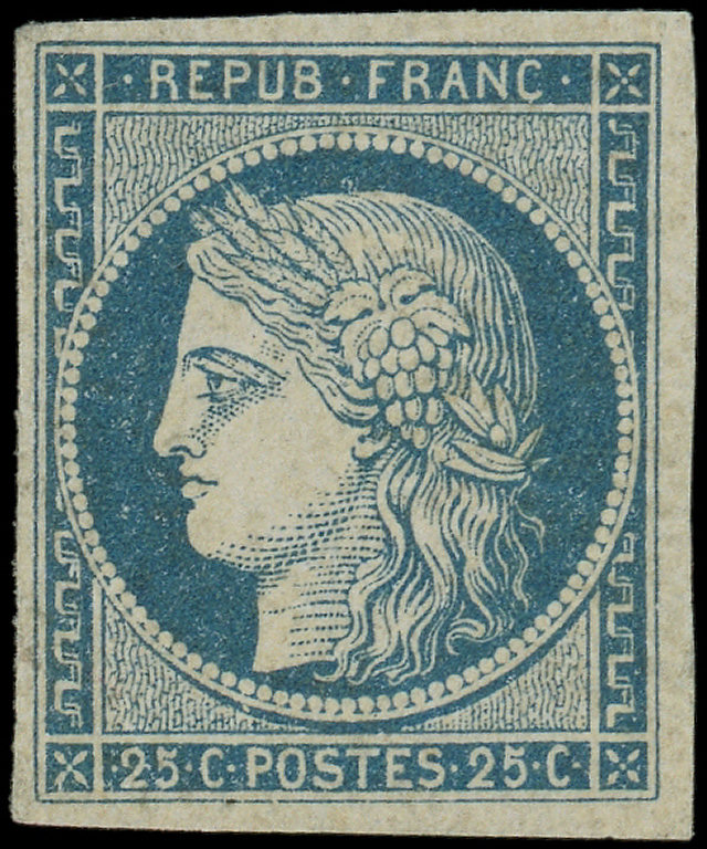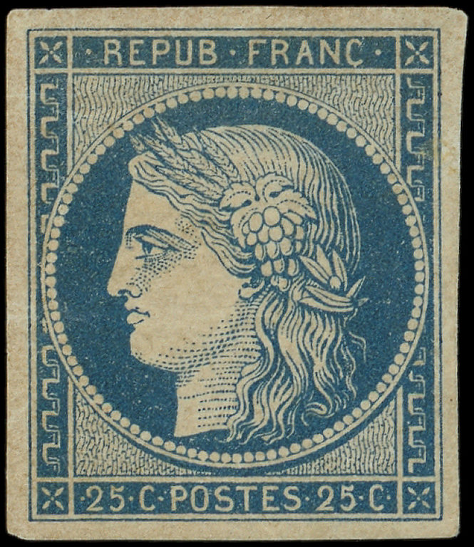 4a 25c. bleu foncé, bdf, neuf avec gomme, grande fraîcheur, TTB, certif. JF Brun et Roumet