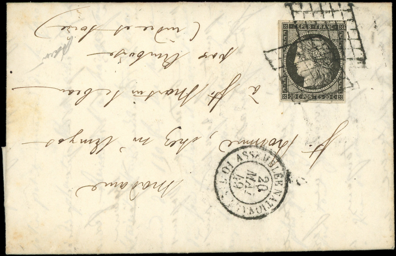 3a 20c. noir sur blanc, obl. GRILLE s. LAC, càd ASSEMBLEE NATIONALE POSTES 20/5/49, TTB