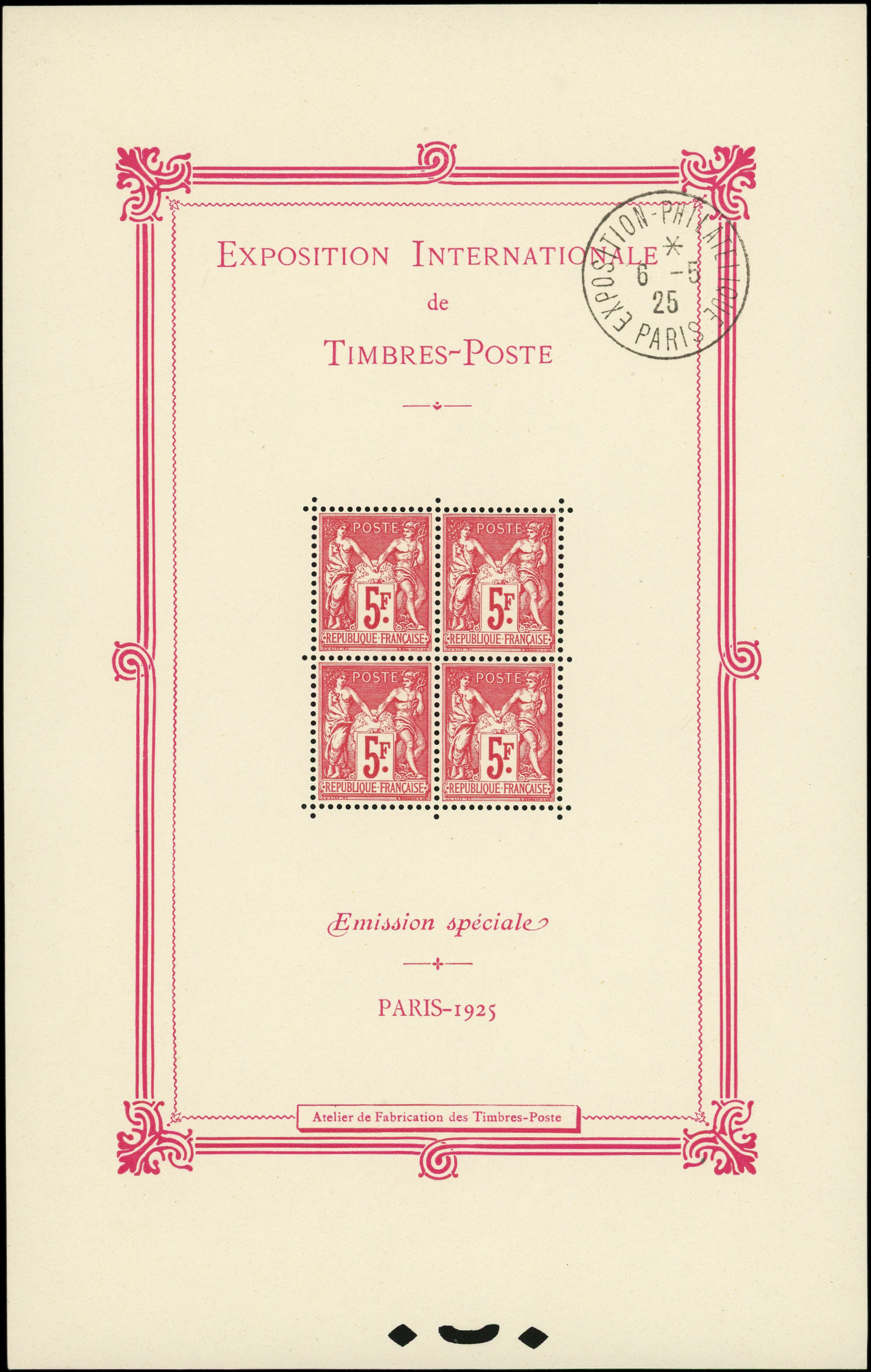 216 Expo Paris, BF N°1, oblitération hors timbres 6/5/25, gomme miroir, TTB