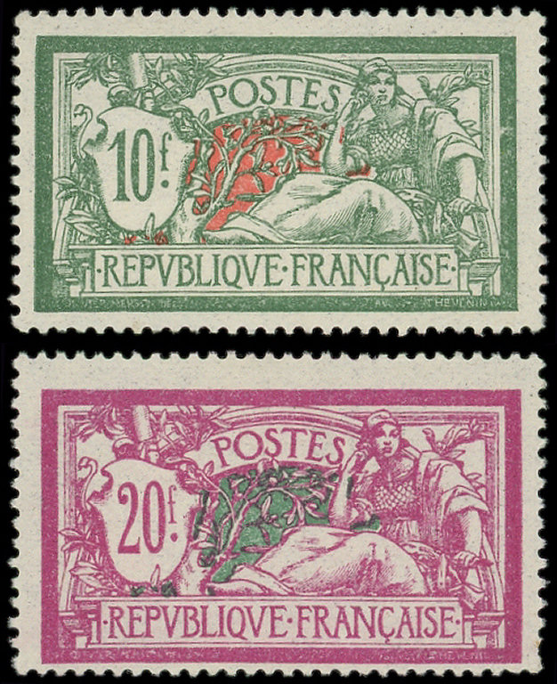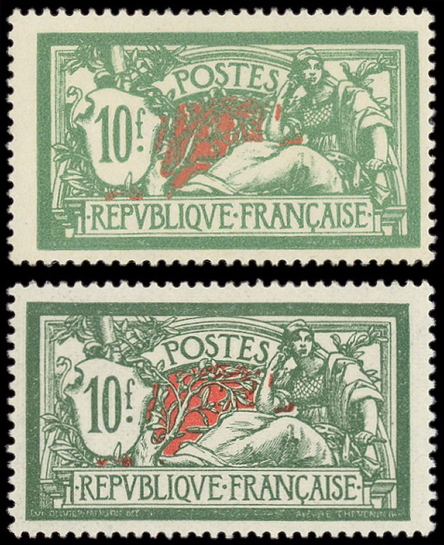 207 Merson, 10f. vert et rouge, 2 nuances, TB