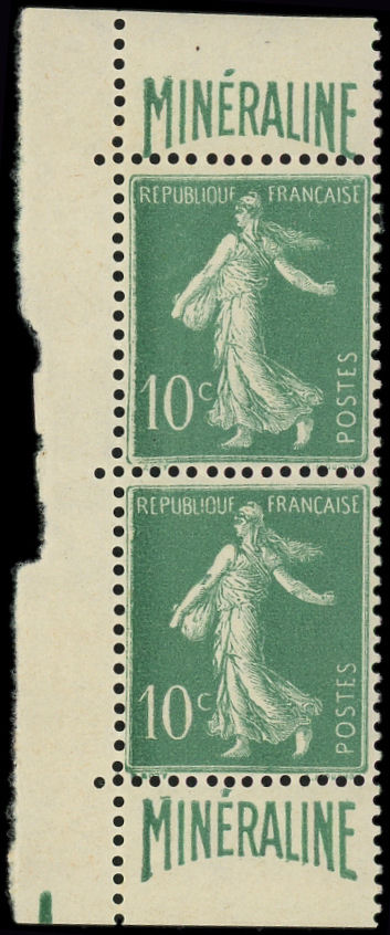 188A Minéraline, 10c. vert, PAIRE verticale bdf, bon centrage, TTB