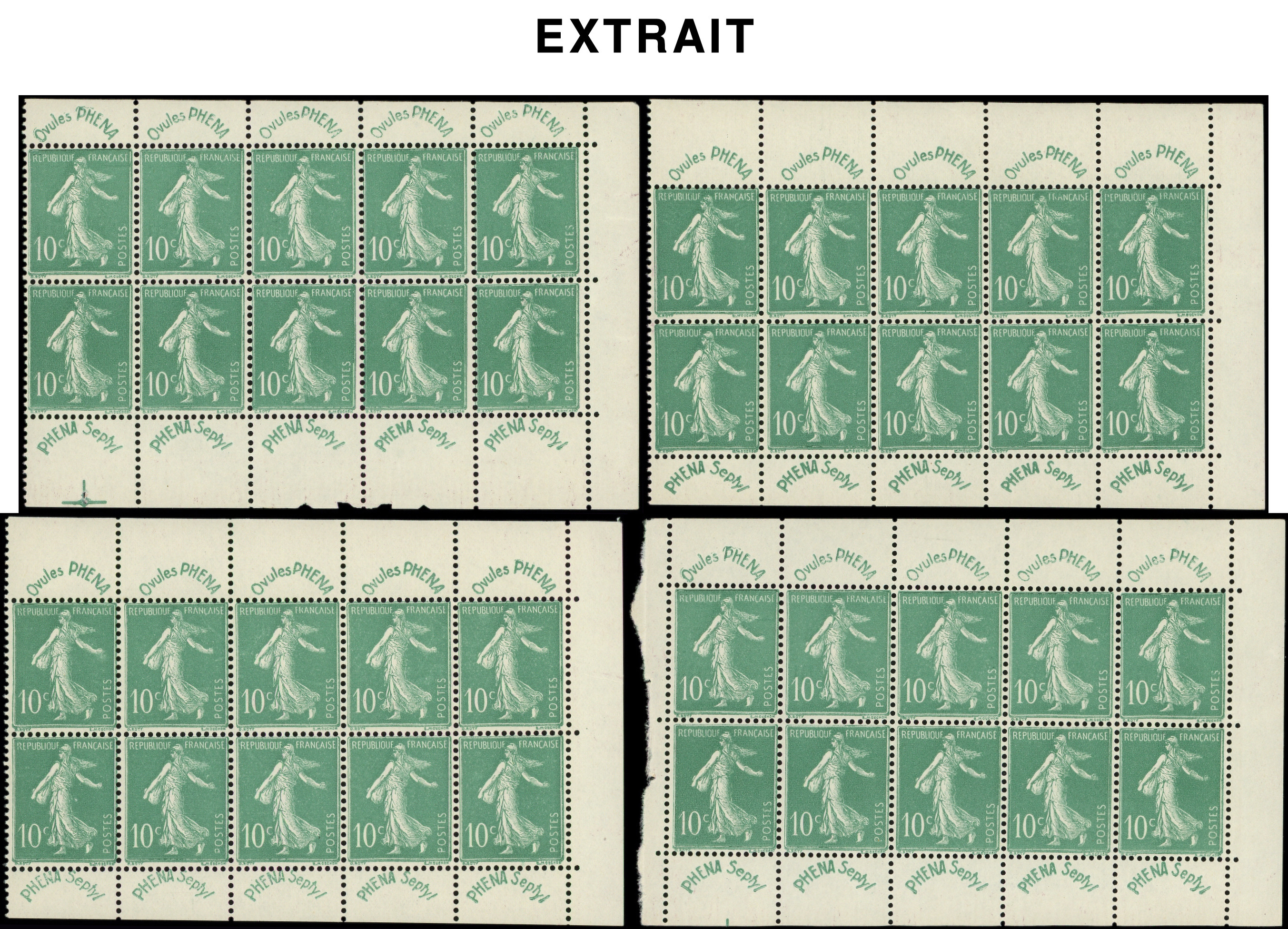 188 Phéna, 10c. vert, 215 ex. en blocs, carnets ou égrainés, TB