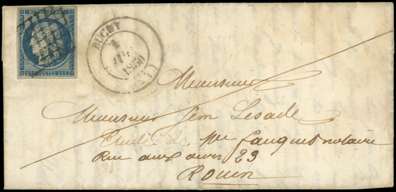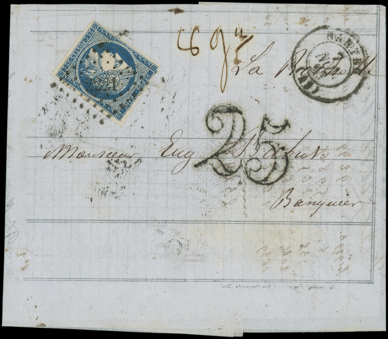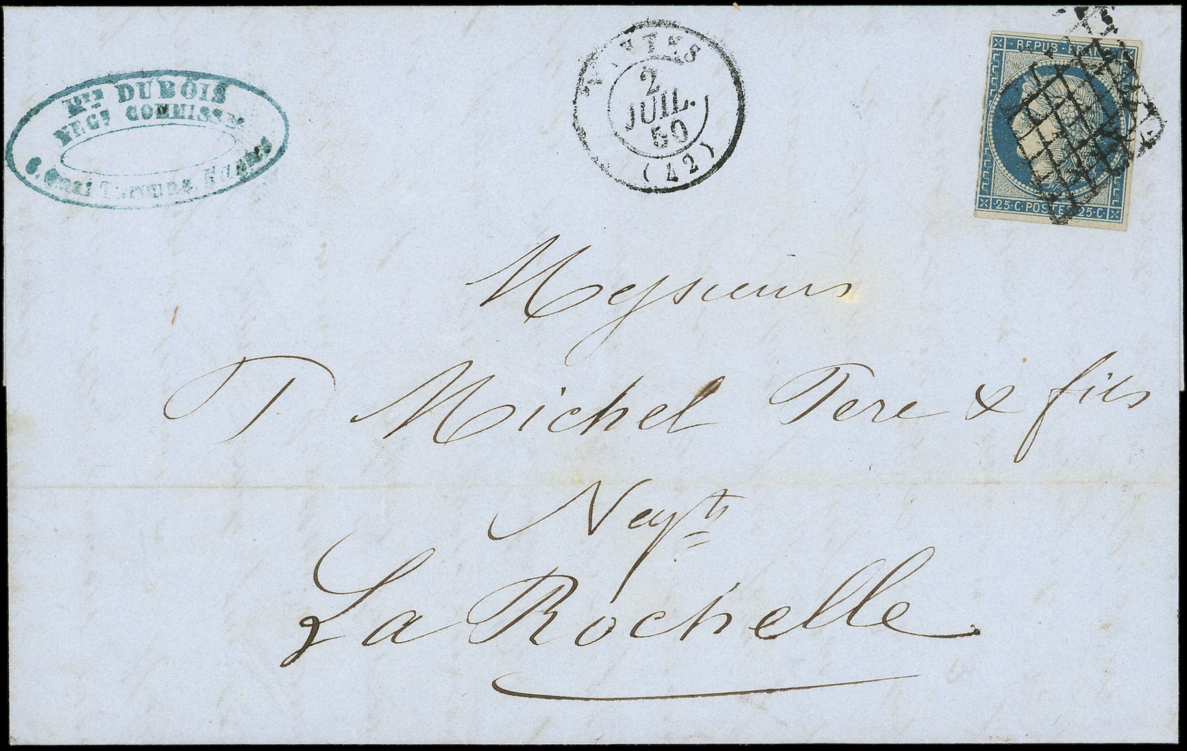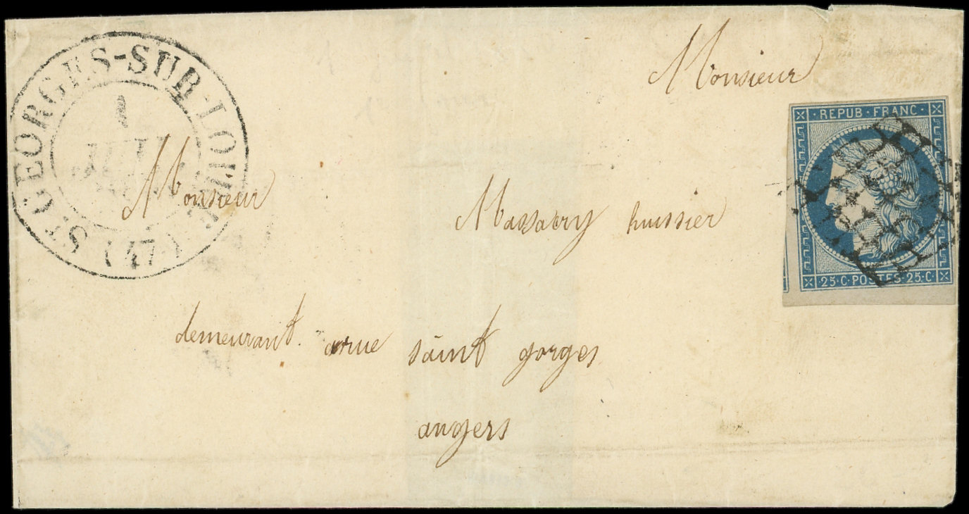 4 25c. bleu, obl. GRILLE s. LSC, càd T13 St GEORGES-SUR-LOIRE 1 JUIL 1850, 1er JOUR du nouveau TARIF, R et TB