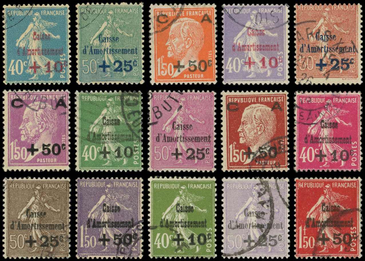 246/77, séries Caisse d'Amortissement, 18 timbres au total, TB