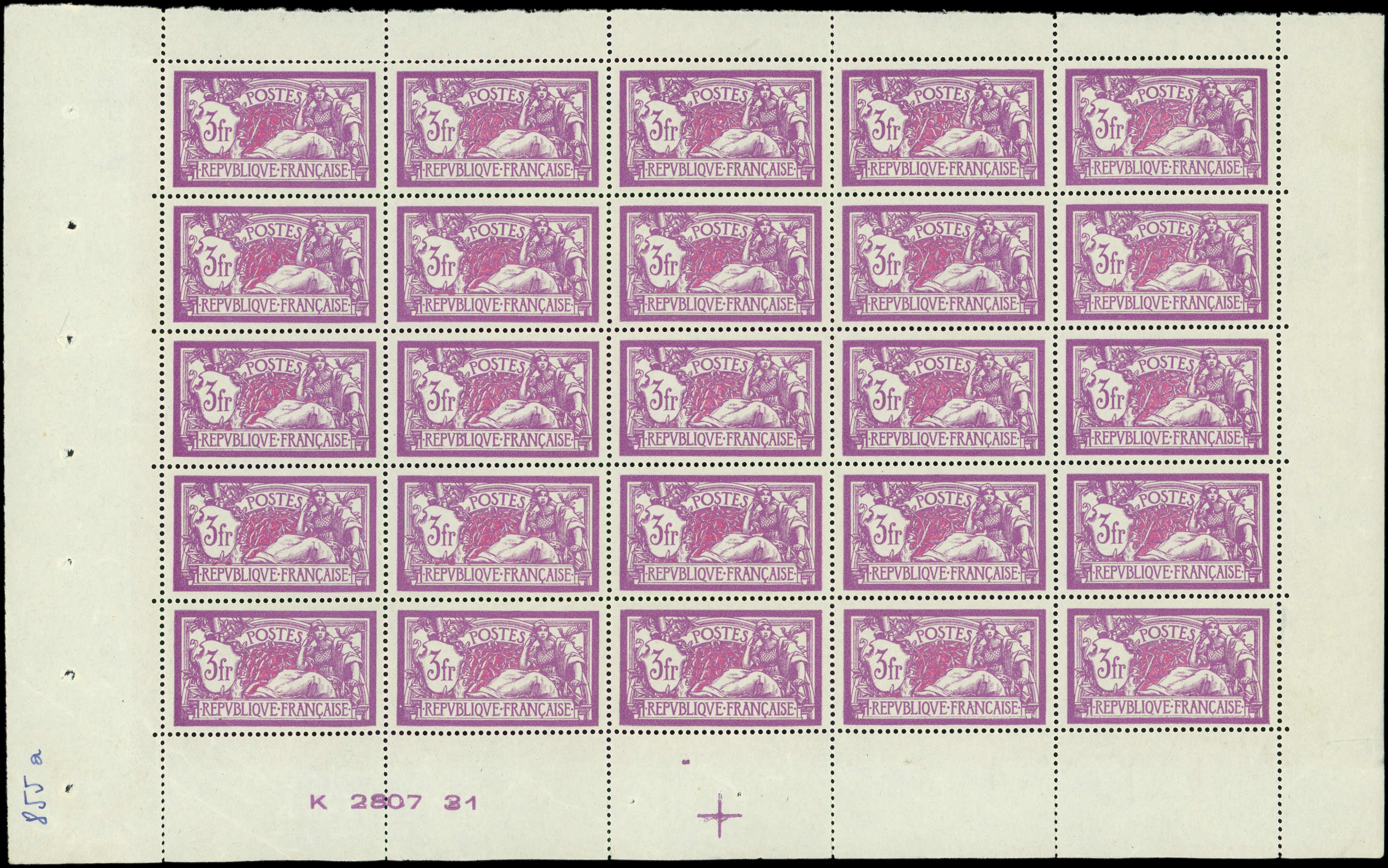 240 Merson, 3f. lilas et carmin, PANNEAU de 25 bas de feuille, TTB