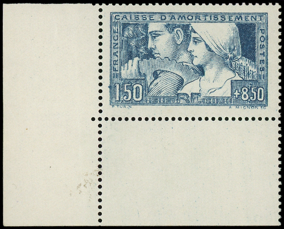 252e Le Travail, 1f.50 + 8f.50, T I, variété TURN, cdf, TB
