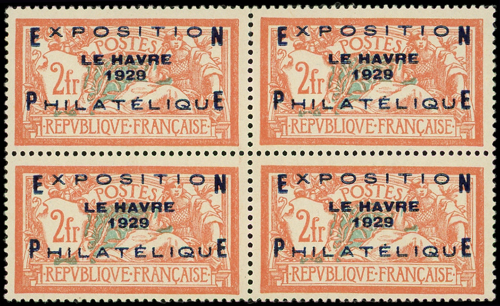 257A Expo Le Havre, 2f. orange et vert-bleu, BLOC de 4 fraîcheur postale, Superbe