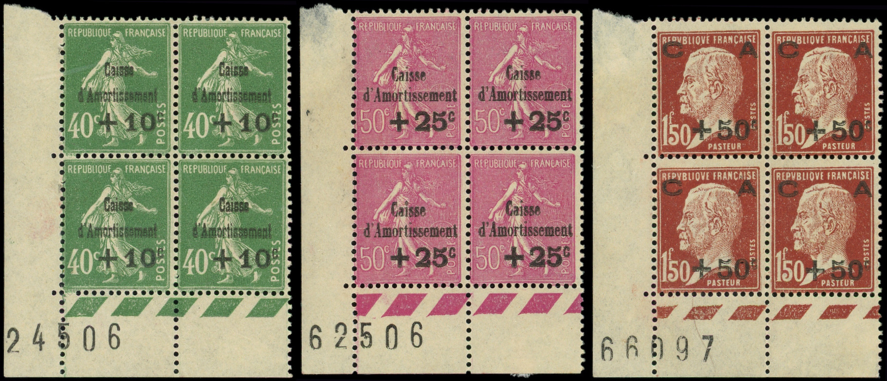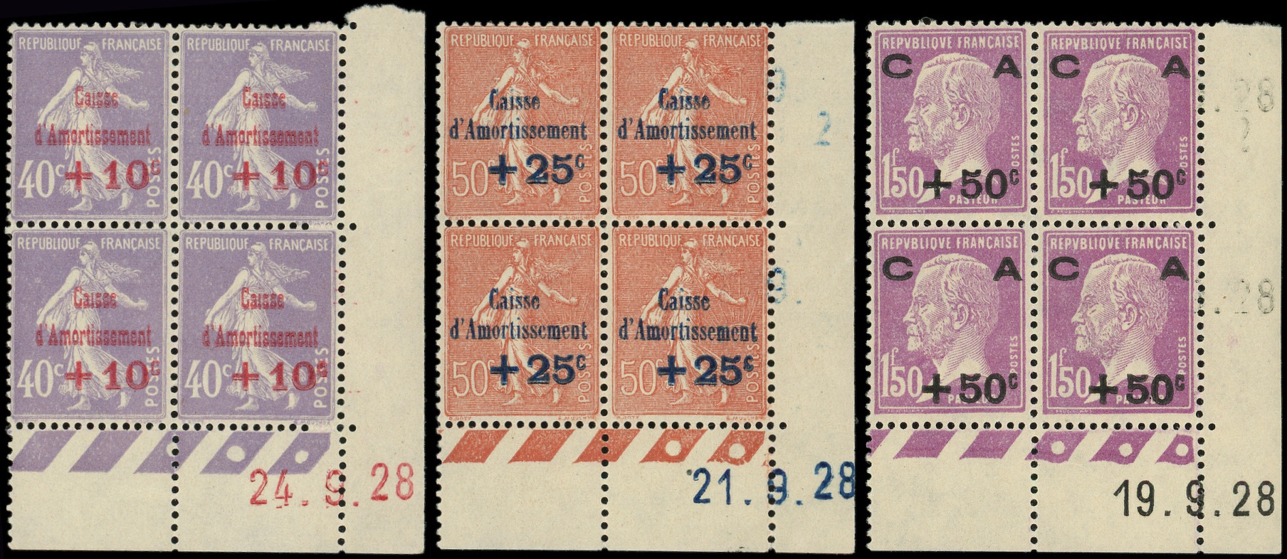 249/51 2ème série Amortissement, la série en BLOCS de 4 CD 24, 21 et 19/9/28, TB