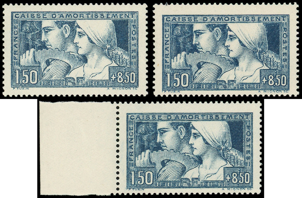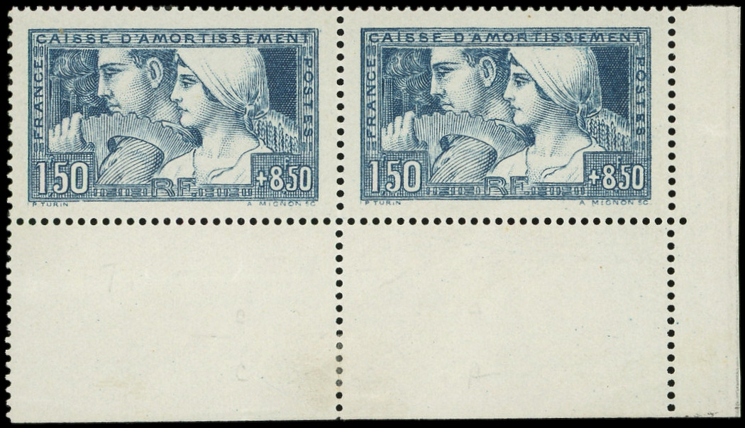 252 Le Travail, 1f.50 + 8f.50 bleu, PAIRE cdf T II et I, TB