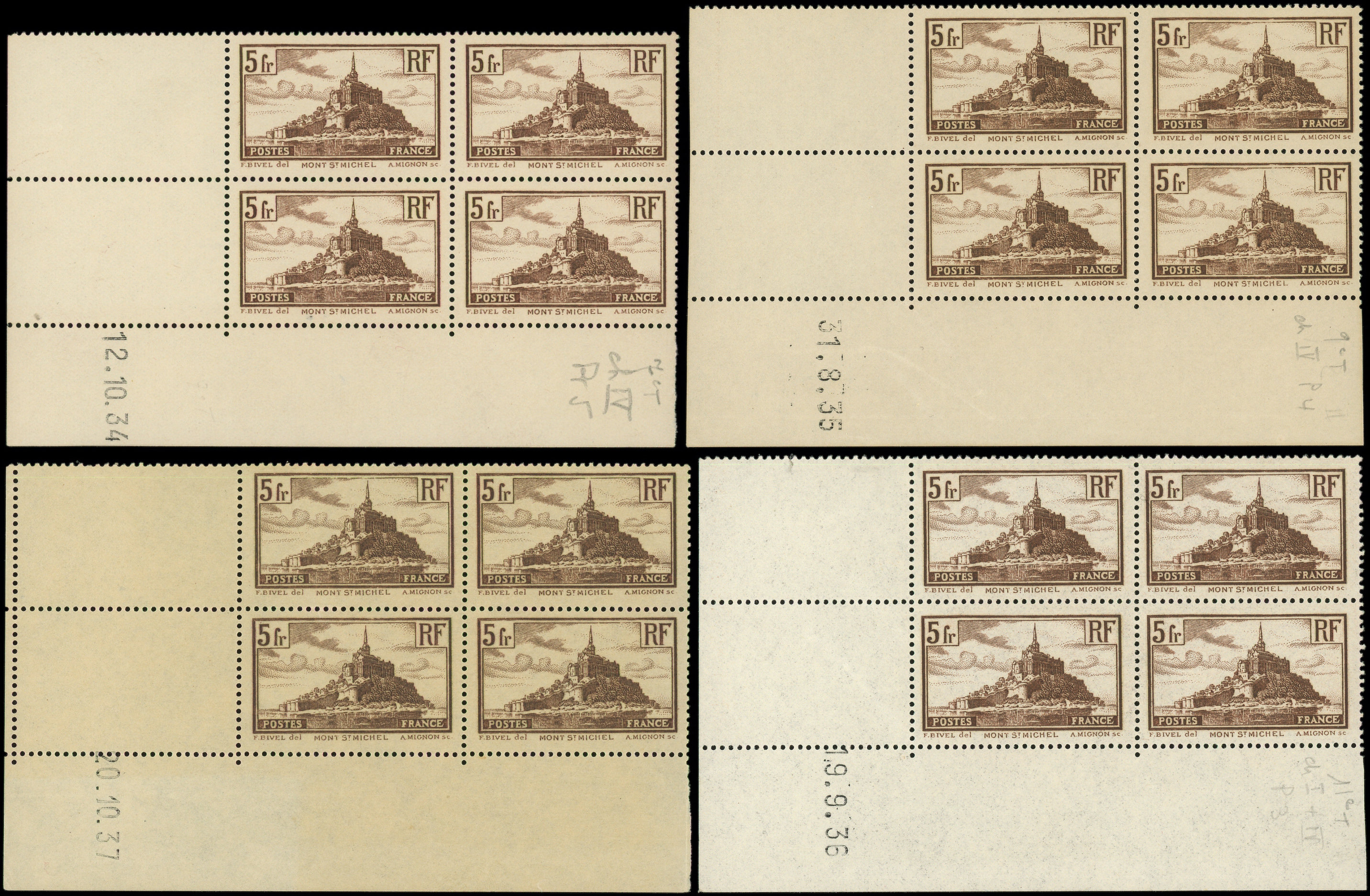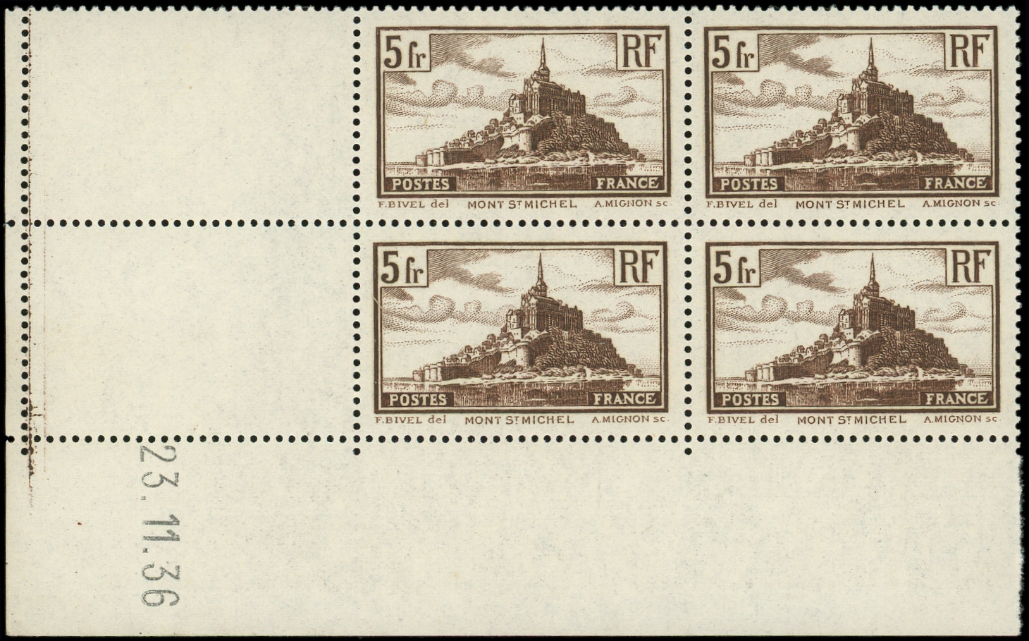 260 Mont St Michel, 5f. brun, T II, BLOC de 4 CD 23/11/36, TB