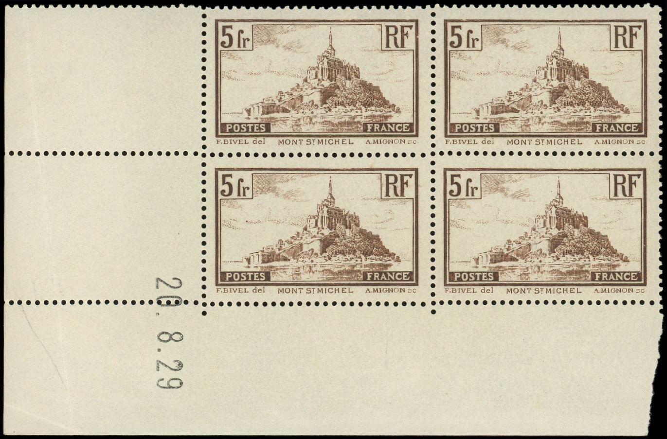 260 Mont St Michel, 5f. brun, T II, 61 ex. à l'unité ou en blocs de 4, TB