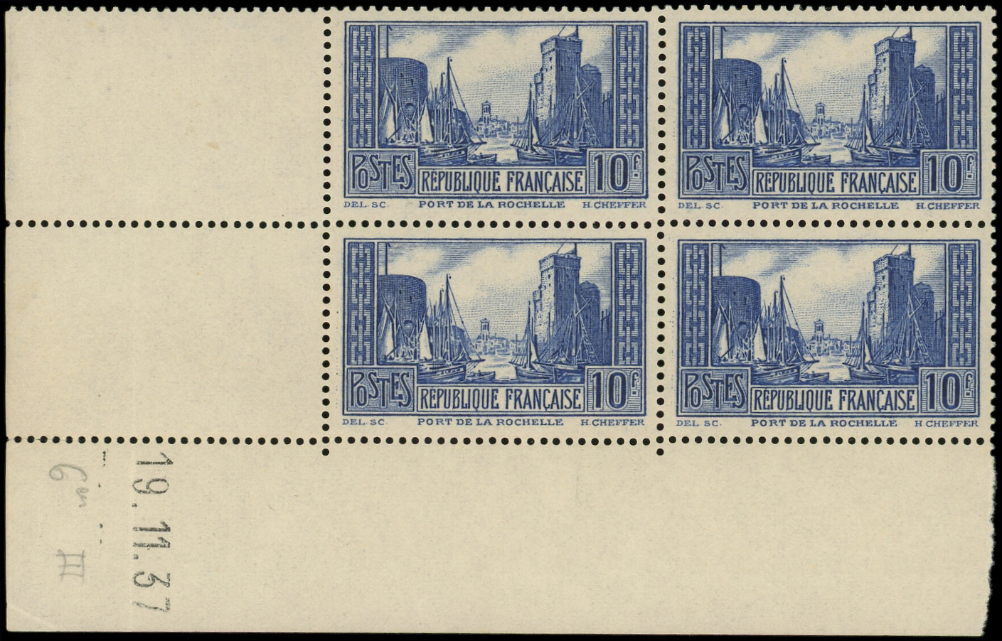 261 La Rochelle, 10f. bleu, T III, BLOC de 4 CD 19/11/37, TB